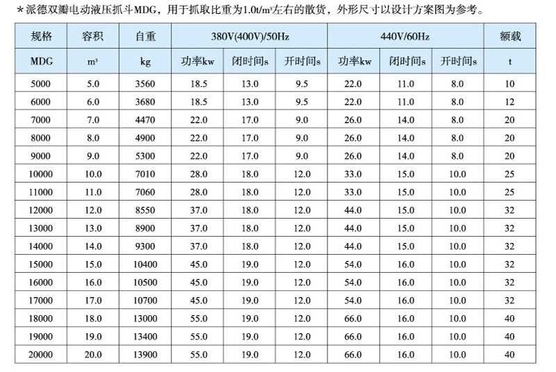 Electro hydraulic grab is a kind of grab with its own hydraulic system such as motor and hydraulic pump, which is driven by external power supply to realize opening and closing. The grab depends on the forward and reverse rotation of the motor or the hydraulic directional valve to control the opening and closing of the grab. Electro hydraulic bulk cargo grab is an effective tool for handling bulk cargo such as yellow sand, coal, mineral powder, ore and cement in various harsh environments. The grab is equipped with a hydraulic system, and the main components of the hydraulic system, such as valve group, seals, valve blocks, etc., are European and American brands. The hydraulic pump adopts constant power pump and hydraulic servo system. The system pressure change can effectively control the output of the pump. When the maximum pressure is reached, the flow of the pump is very low, which greatly reduces the overflow, reduces energy consumption, and reduces the oil temperature, so as to use long-time continuous work and greatly improve the production efficiency. The grab has simple structure and convenient operation, and can work in various harsh environments. The unique jaw curve is particularly conducive to the loading and unloading of various bulk cargoes. The upper part of the grab is equipped with a cable interface to facilitate the connection with the crane.
